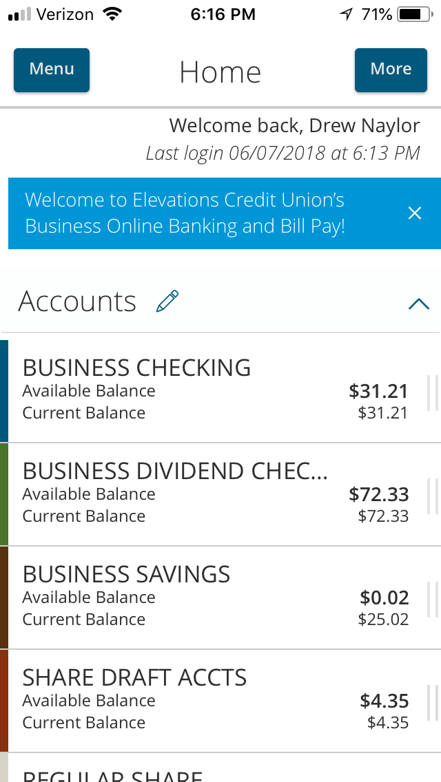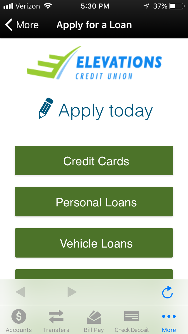 I was responsible for branding, IA, IxD, iconography and overall design for the Elevations Consumer and Business mobile apps. The screens below show many of the interactions I worked on, including the addition of supplying a FICO score to our online banking members.